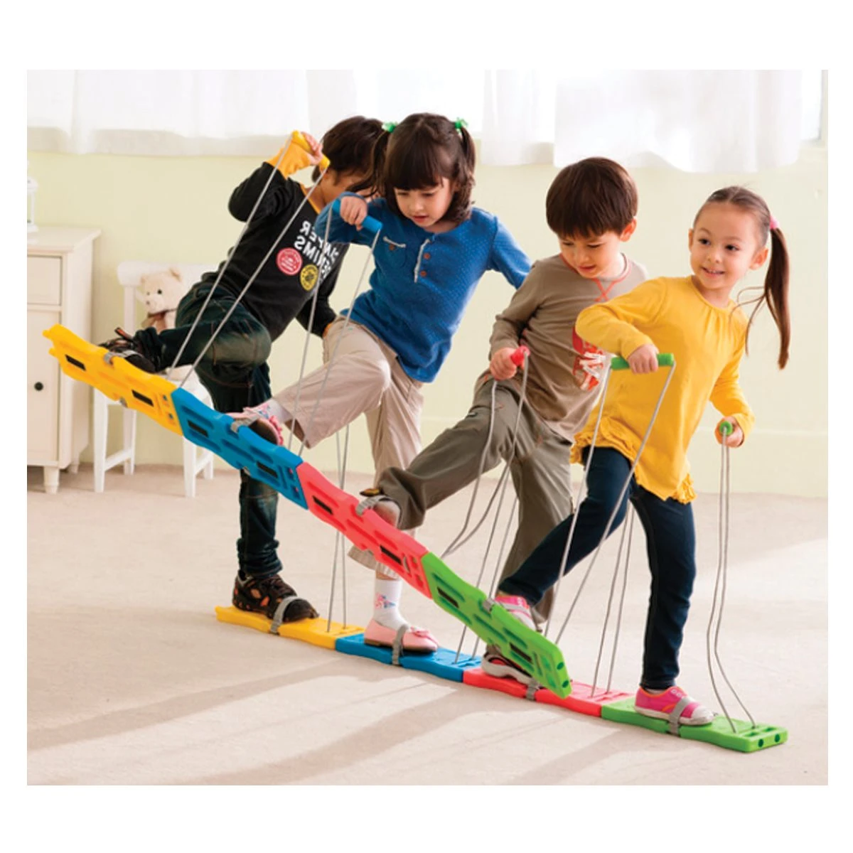 L’ensemble de 4 paires de ski de balade Team Walker de Weplay est parfait pour améliorer autant la coordination des mouvements individuels que pour favoriser le travail d’équipe des enfants de 3 ans et plus. Les enfants peuvent marcher de façon individuelle ou peuvent rassembler leurs pieds ensemble à l’aide du système de verrouillage. Chaque pièce peut être attachée et bloquée à une autre et s’ajuste aux pieds de toutes tailles à l’aide de la sangle en caoutchouc. Les paires de ski de balade sont parfaites pour les écoles et les garderies.
