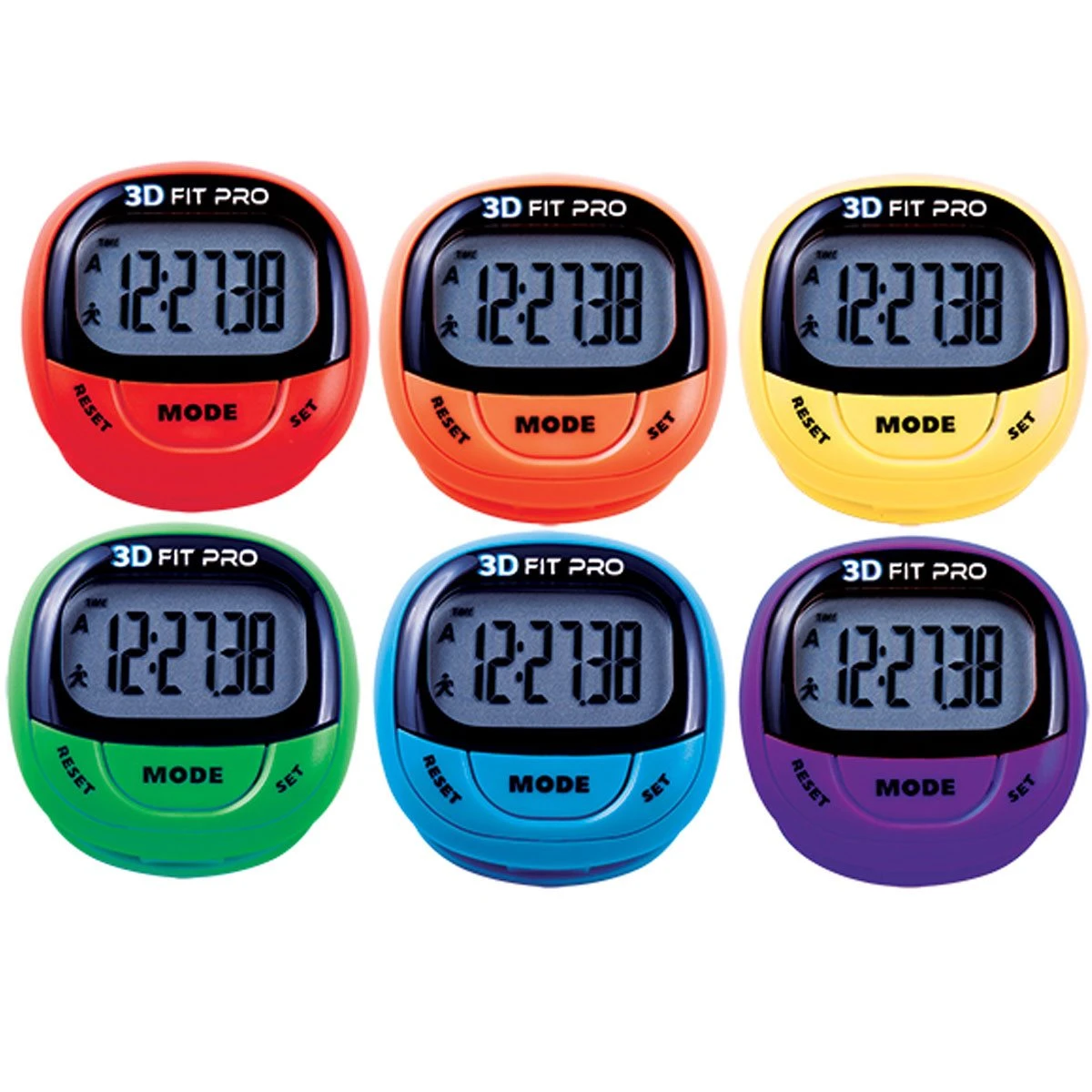 Ensemble de 6 podomètres FITPRO aux couleurs assorties.