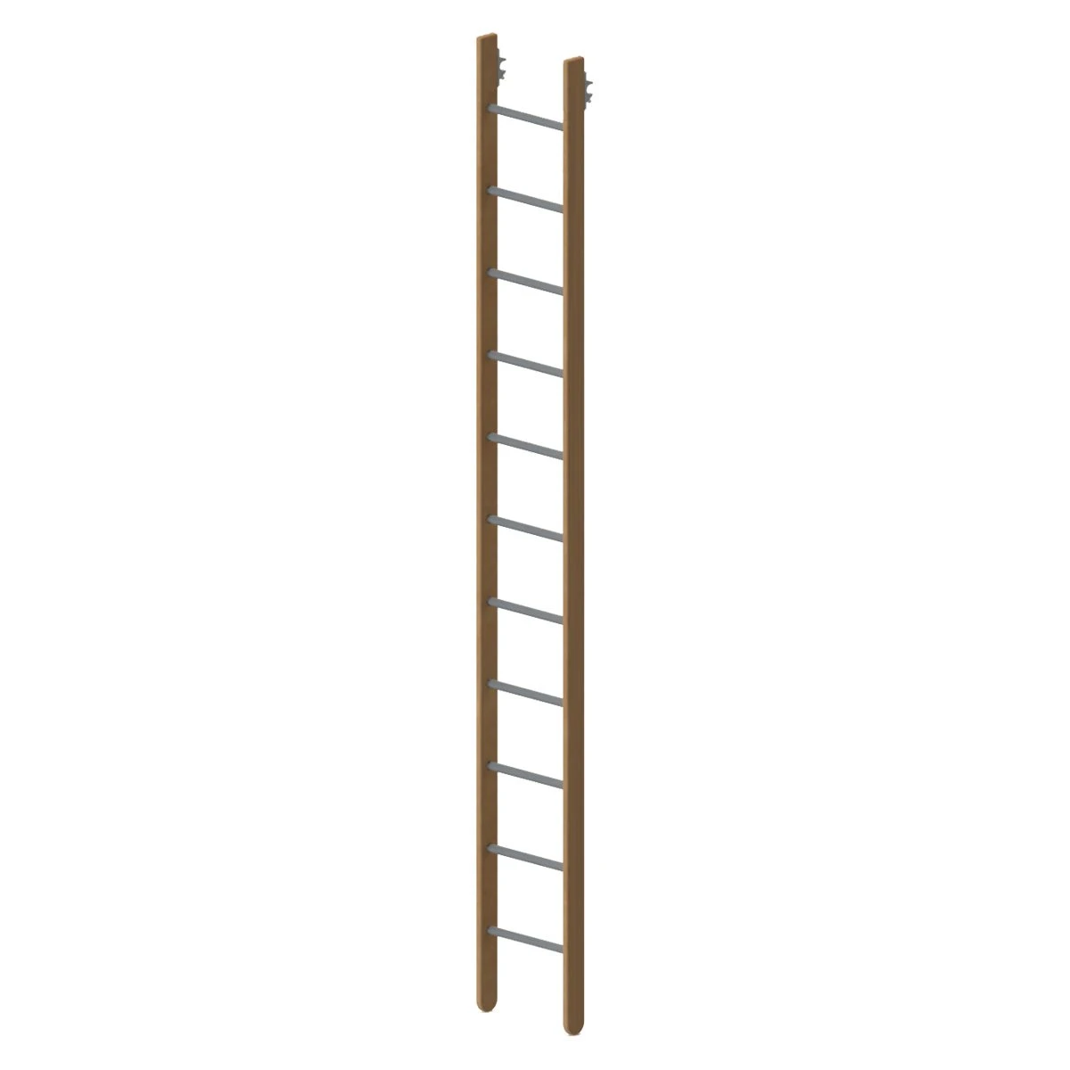 Échelle verticale en bois avec barreaux en acier.