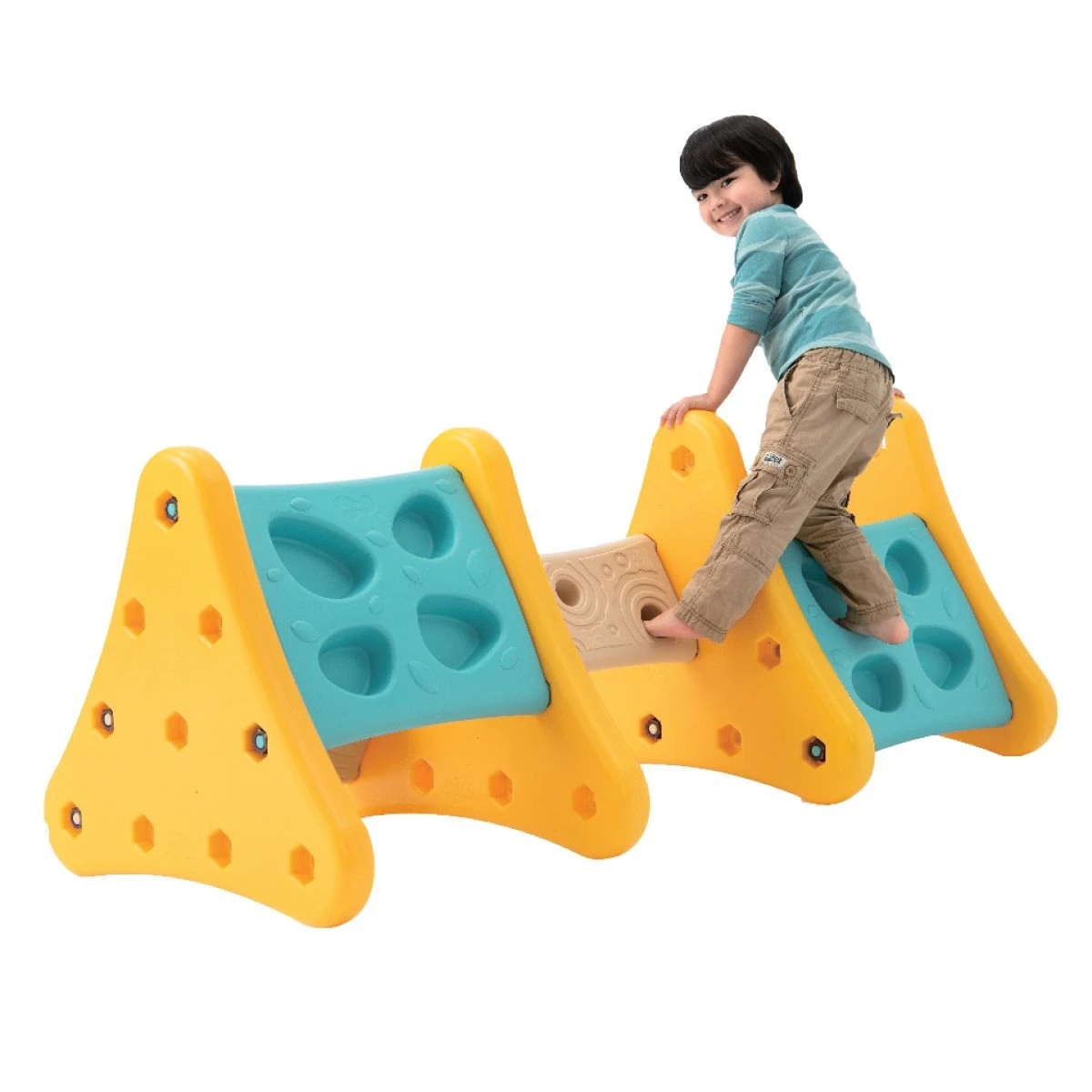 Les empreintes sur les planches ont Ă©tĂ© créées pour l’escalade et elles d’adaptent aux mains et aux pieds des enfants. Les planches larges et Ă©troites peuvent ĂŞtre assemblĂ©s de diffĂ©rentes façons afin d’offrir une multitude de parcours.Â